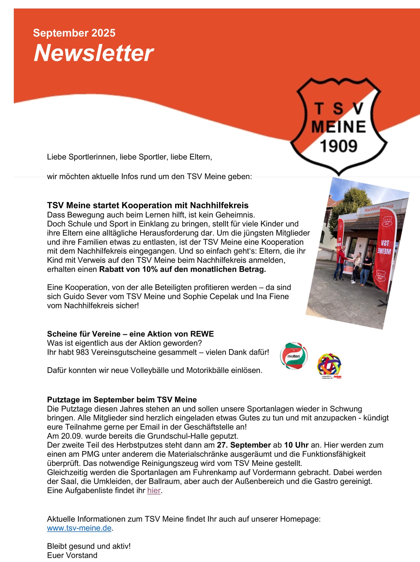 Aktuelle Informationen zum TSV Meine findet Ihr auch auf unserer Homepage: